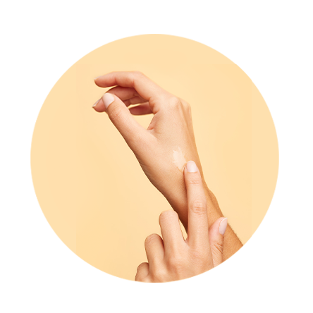 Aplica 2 o 3 pulsaciones de producto en las manos secas y extiéndelo con movimientos circulares por todo el rostro seco.
