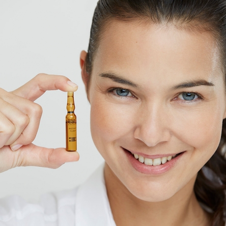 Utilizar sobre la piel limpia y seca. Aplicar ½ ampolla sobre cara y cuello realizando un ligero masaje hasta que el producto se absorba completamente. Después de su aplicación aplicar directamente el maquillaje. Uso tópico para todo tipo de pieles.